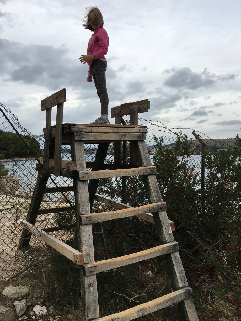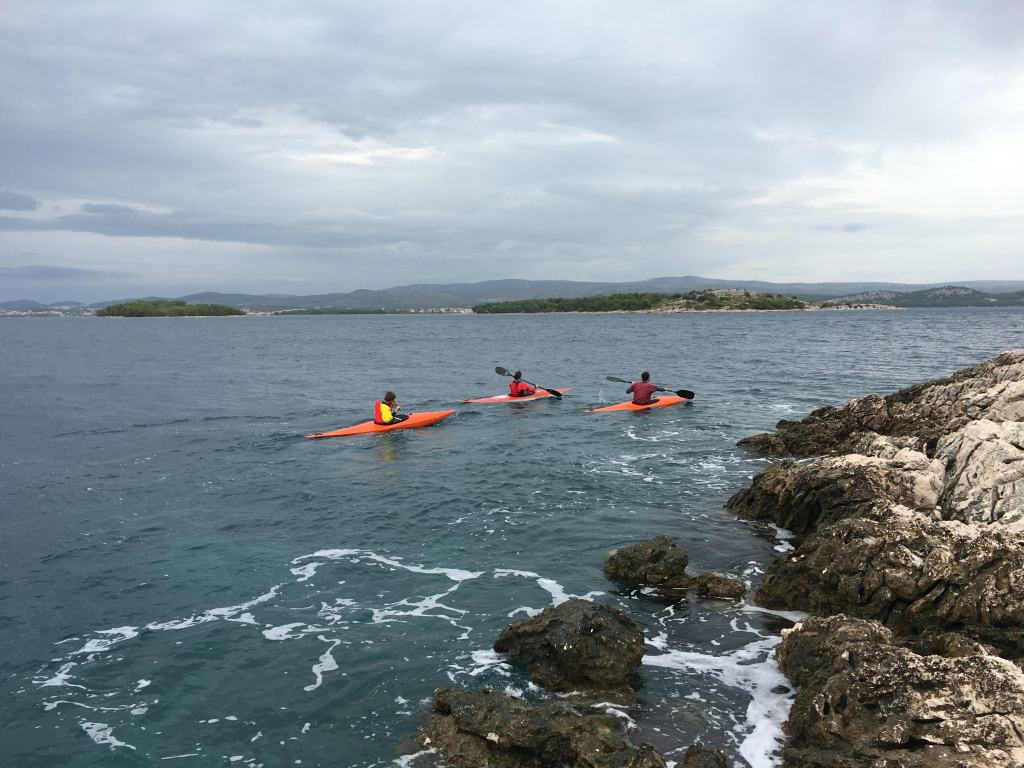 Na poti se ustavimo še v ŠIBENIKU pri prijateljih. Trije gredo veslat, ostali štirje gremo pa s prijateljico »Sej ni daleč pa še čist mal.« na sprehod do rta. Še čist’ mal’. Ne, saj ni daleč 🙂