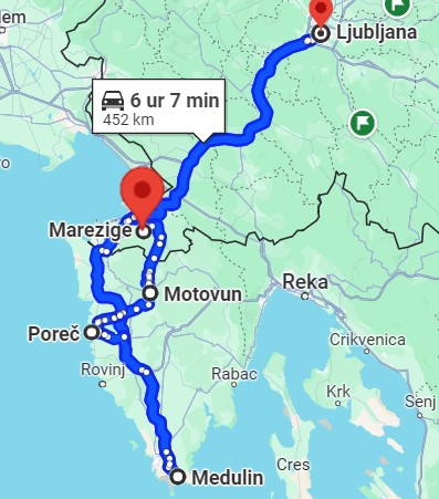 Zapeljemo se do MAREZIG, kjer pri Vinoteki BRŽAN parkiramo. Prostor najdemo preko aplikacije Park4Night. Ogledamo si vinsko klet, seveda nekaj spijemo, kupimo par steklenic vina, se usedemo pred avtodom in uživamo ob razgledu na KOPER.