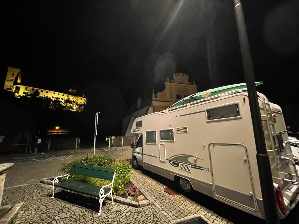 Prvi večer se pripeljemo do ROŽMBERKA, kjer pred gostiščem parkiramo in prespimo.