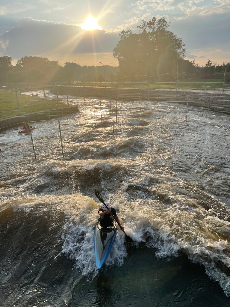 Gašper mora narediti trening, zato gremo do kajak proge, kjer se zmenimo, da lahko ob progi tudi prespimo. Zvečer si ogledamo mesto.