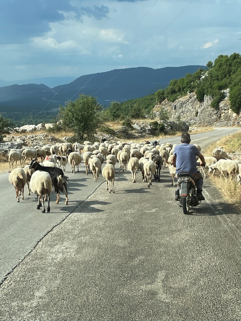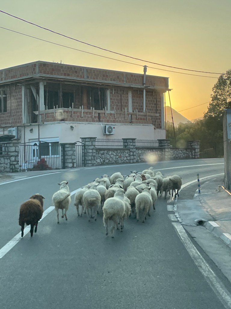 Ker smo računali, da bomo še nekaj dni v Albaniji in nekaj dni v Črni gori, smo se že odpravili proti meji in prespali zadnji noč na čudoviti plaži. Zjutraj, ko sem pila čaj, so me obkrožile koze. Še sreča, da niso bile krave….