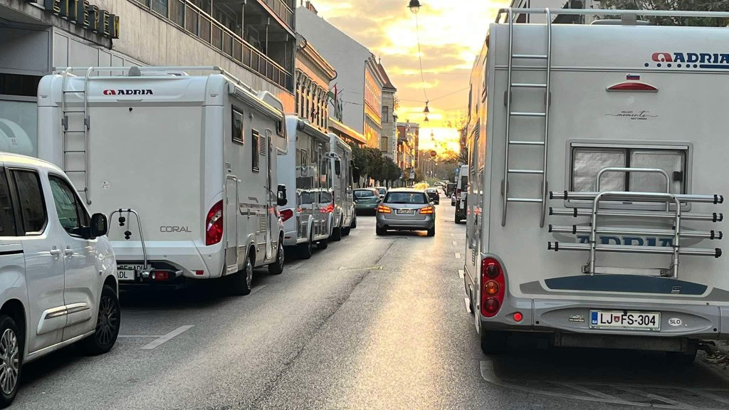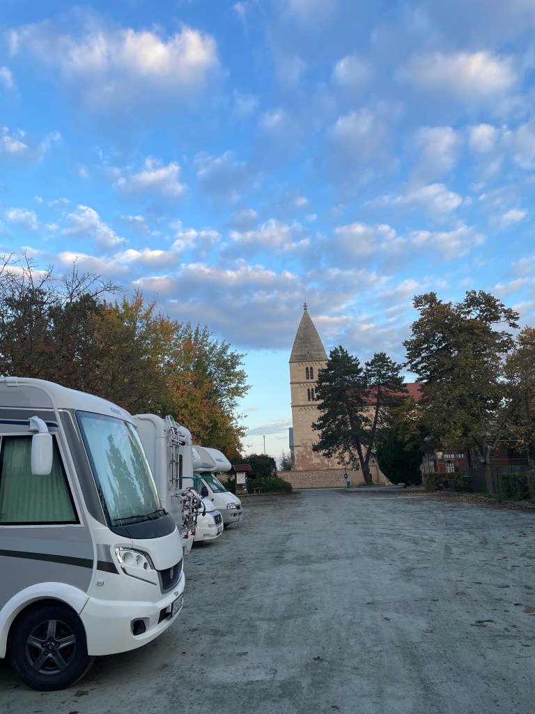 Ker je bil izbrani parking za mostom 47.6845 17.6262 prepoln za štiri avtodome, se odločimo, da se zapeljemo malo ven in pred eno šolo, parkiramo (nisem si zapisala koordinat), skuhamo in se potem premaknemo v center mesta GYOR, kjer v eni ulici pri pekarni vsi štirje tudi parkiramo.
