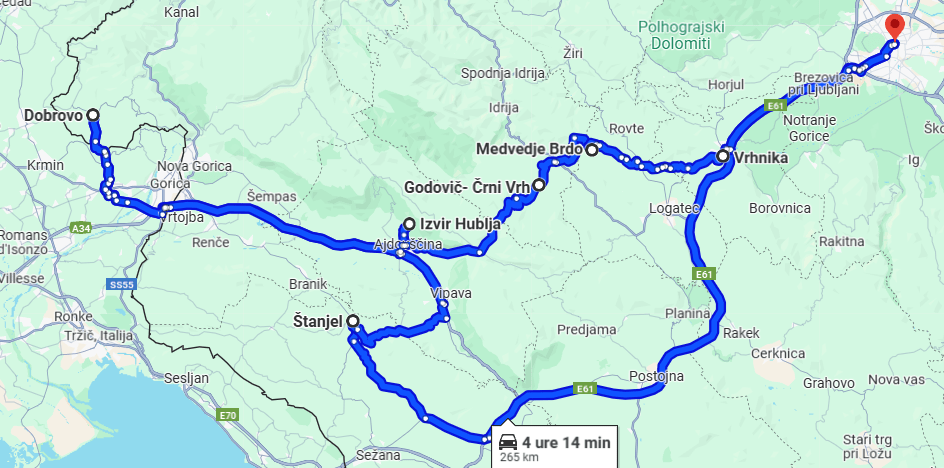 Damir in Maruša sta odšla že v petek, prespala v ŠTANJELU (45.8221, 13.8425), naslednji dan šla na izvir reke Hubelj (45.8975, 13.9057) v Ajdovščino in potem v DOBROVO, kjer sta me pričakala v soboto, ko sem prišla po službenih obveznostih.