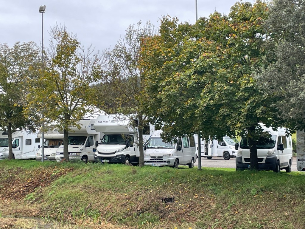 Parkirali smo na PZA 43.3510 12.5650, mislim, da za 10€ / noč. Vsa oskrba na voljo.