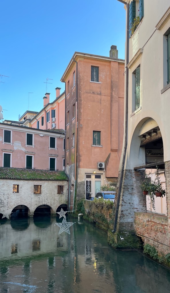 Mestece, mimo katerega se vedno peljemo, ko gremo kamorkoli dalj kot do Benetk. Prezrto mestece, ampak najbrž z razlogom. Malo mestece, mirno, nič se ni dogajalo. Še pizzo smo komaj našle.