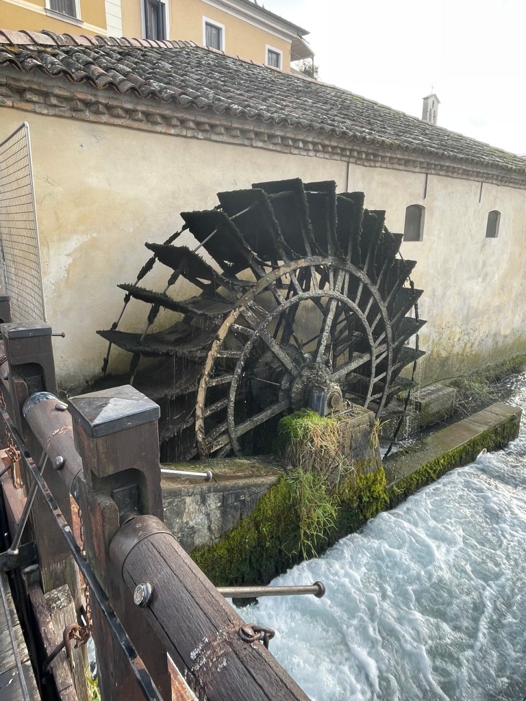 Imajo pa zelo zanimiv cerkveni stolp. Skoraj tako postrani, kot v Pisi. Pa dva vodna mlina. Zanimivo, za pogledat, pa za spit kapučino.